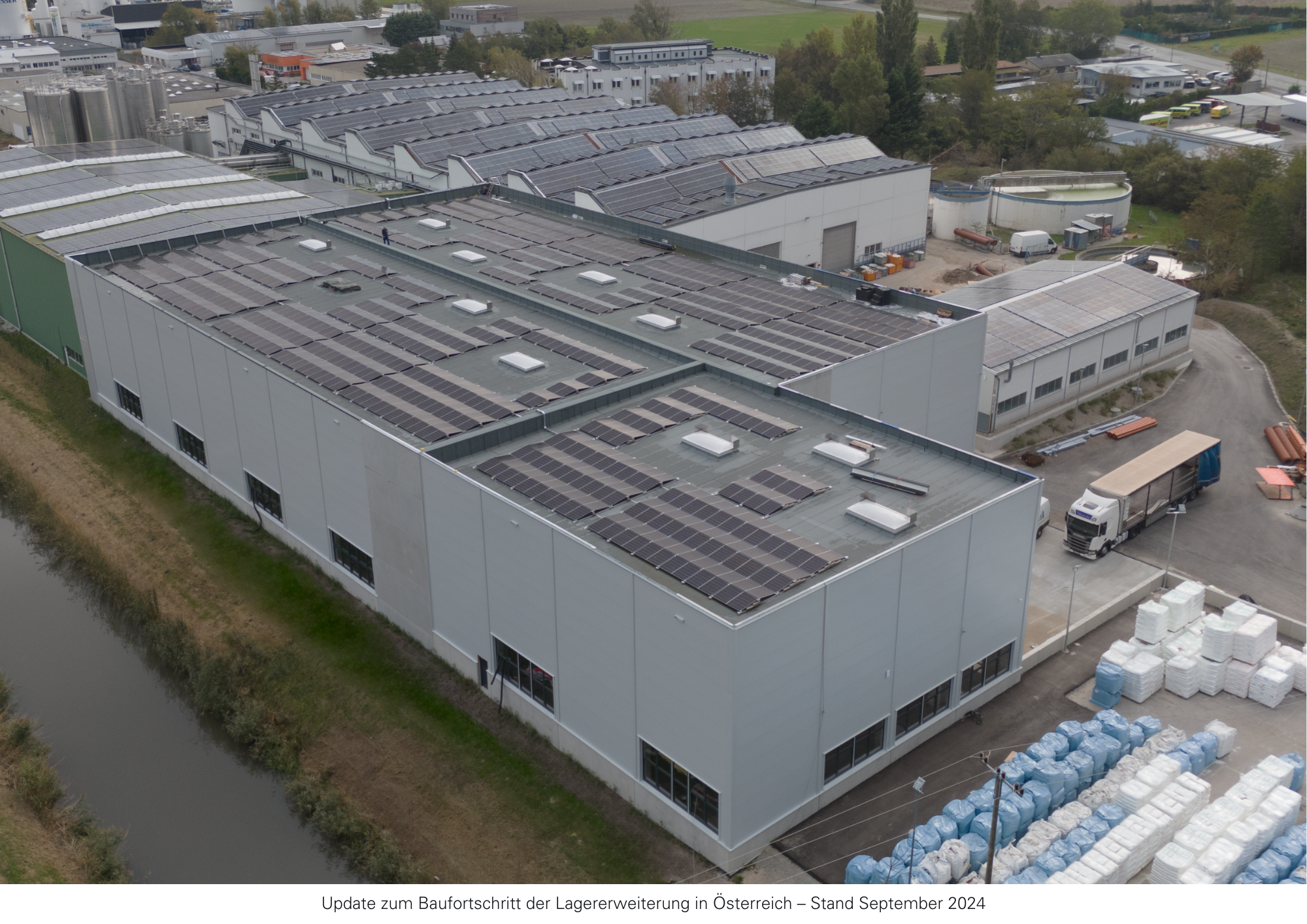 Im Inneren des neuen Gebäudes wird eine Verschubregalanlage installiert, die zusätzlich 5.000 Palettenstellplätze bietet. Diese Maßnahme ermöglicht es, zukünftig auf ein Außenlager zu verzichten. Der Standort in Gumpoldskirchen wird dadurch seine bedeutende Rolle für die Gabriel-Chemie Gruppe, besonders im Bereich Supply Chain und Logistik, weiter stärken. Darüber hinaus wird das Gebäude mit einer PV-Anlage ausgestattet, die zusätzlich 320 kWp zu der bestehenden Anlage von 881 kWp beitragen wird.